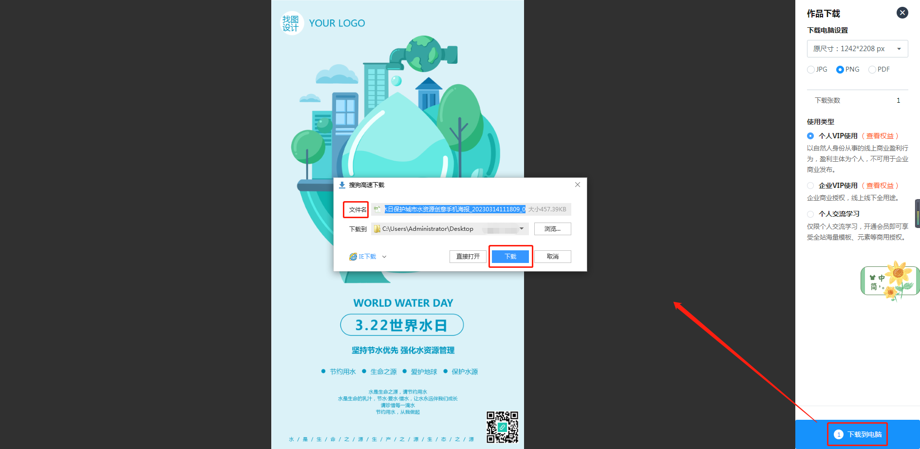点击【下载到电脑】,可更改文件名后点击下载,即可下载到桌面;