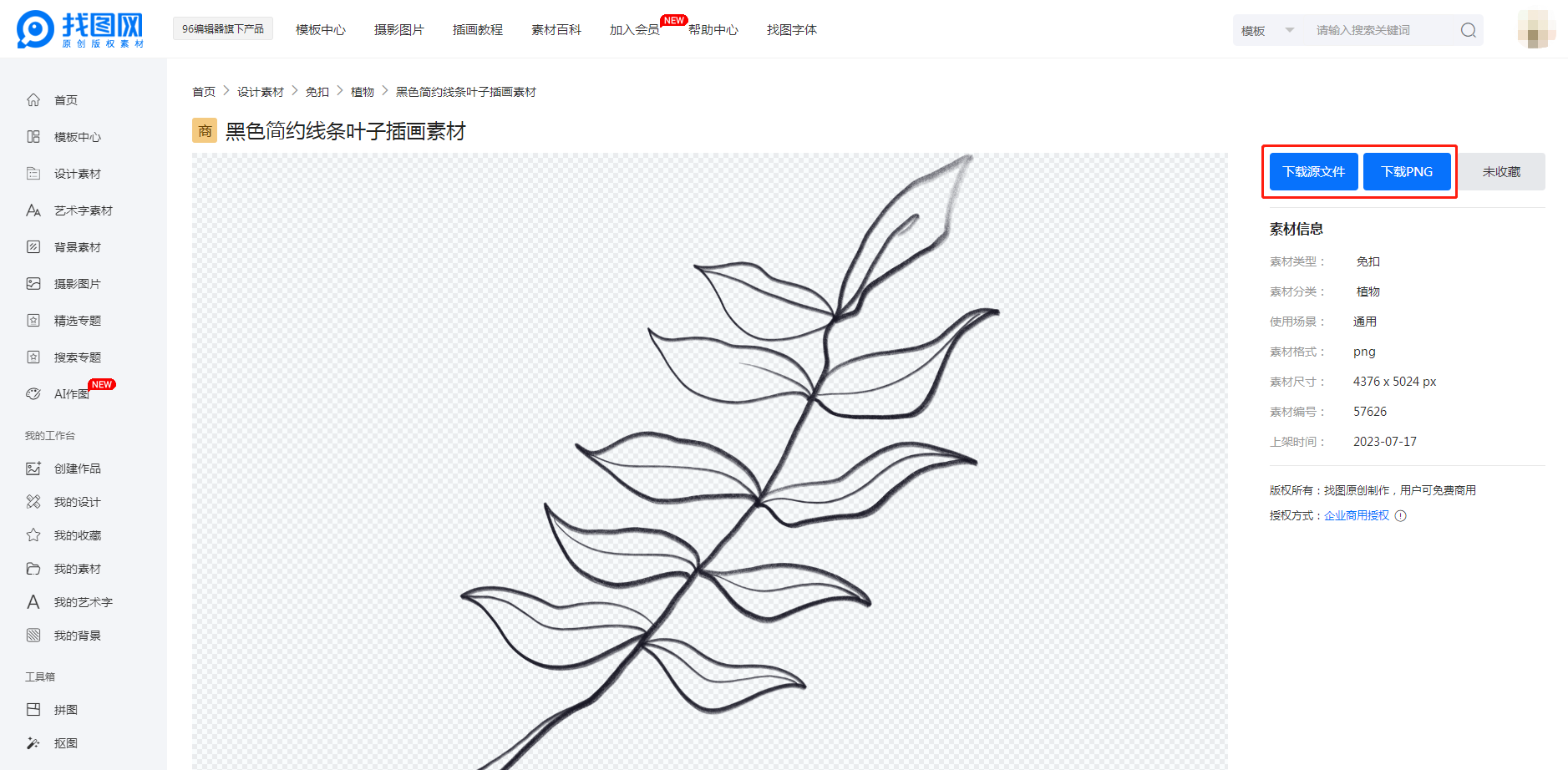 单片叶子线条插画是一种具有高级感的艺术形式,它能够为你的设计作品增添自然之美和生机。今天就推荐给大家一个我常用的手绘插画下载网站——找图网https://www.zhaotu.com/,帮你轻松下载极简风格单片叶子插画,不会设计也可以制作出高级感小红书封面图。详细教程如下: