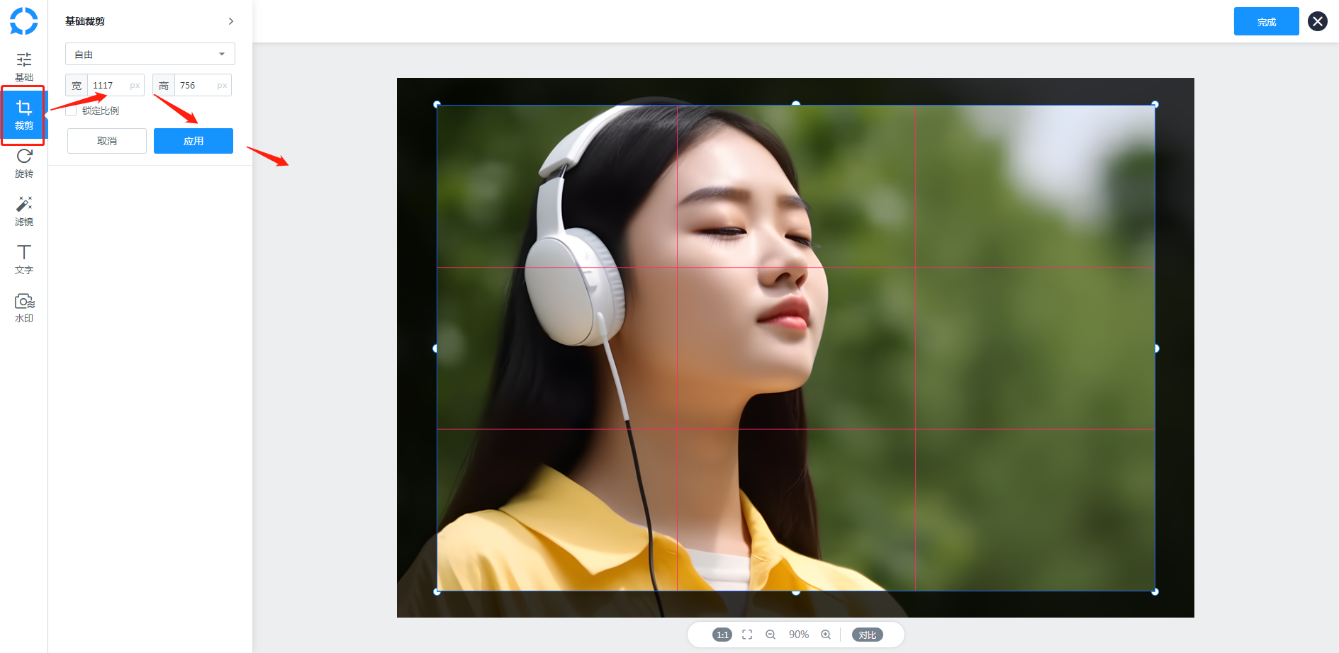 最后,调整出想要的图片效果,点击完成,即可应用到小红书封面模板中。