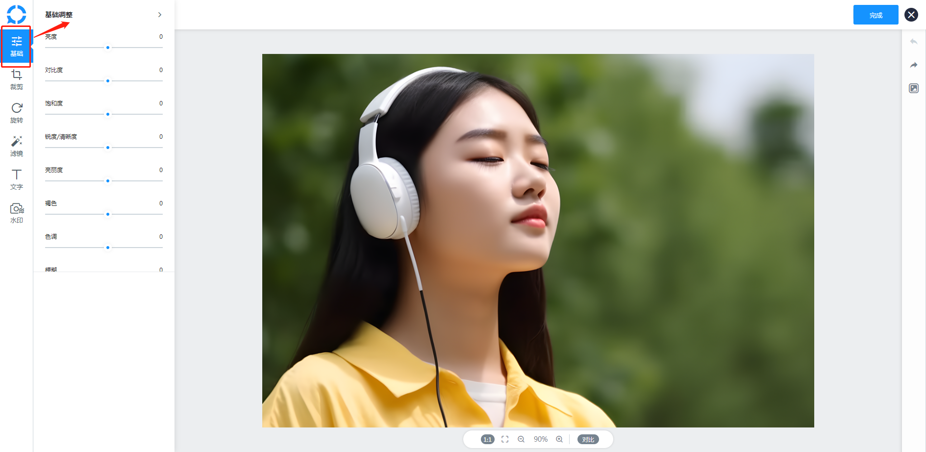 可以根据自己的需求调整图片的基础设置,包括亮度、对比度、饱和度等,使图片整体更符合自己的审美;