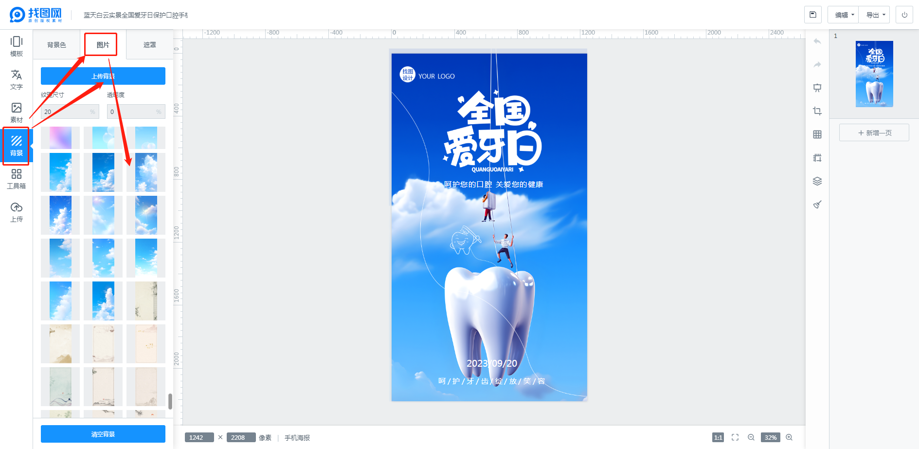 有的小伙伴想要在线制作蓝色实景的全国爱牙日手机海报,具体该怎么操作呢?一起来看看吧!