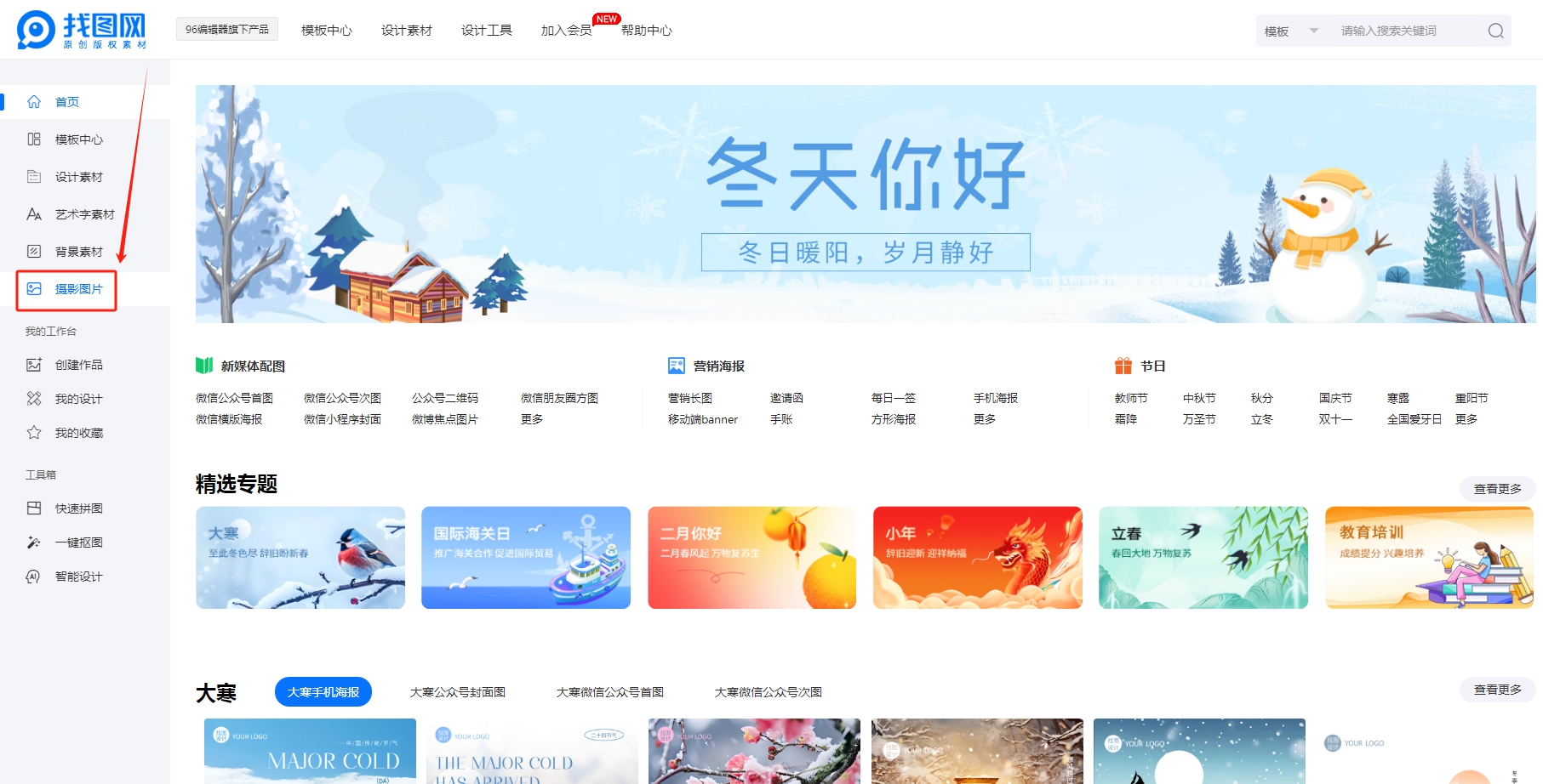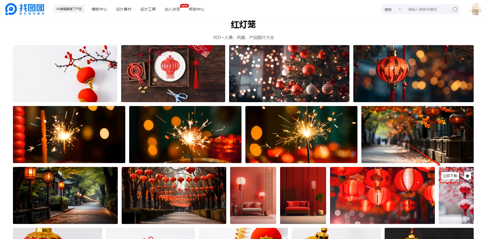 首先,在找图网-摄影图片内,搜索自己想要的高清图关键词,例如:春节、新年、红灯笼等;