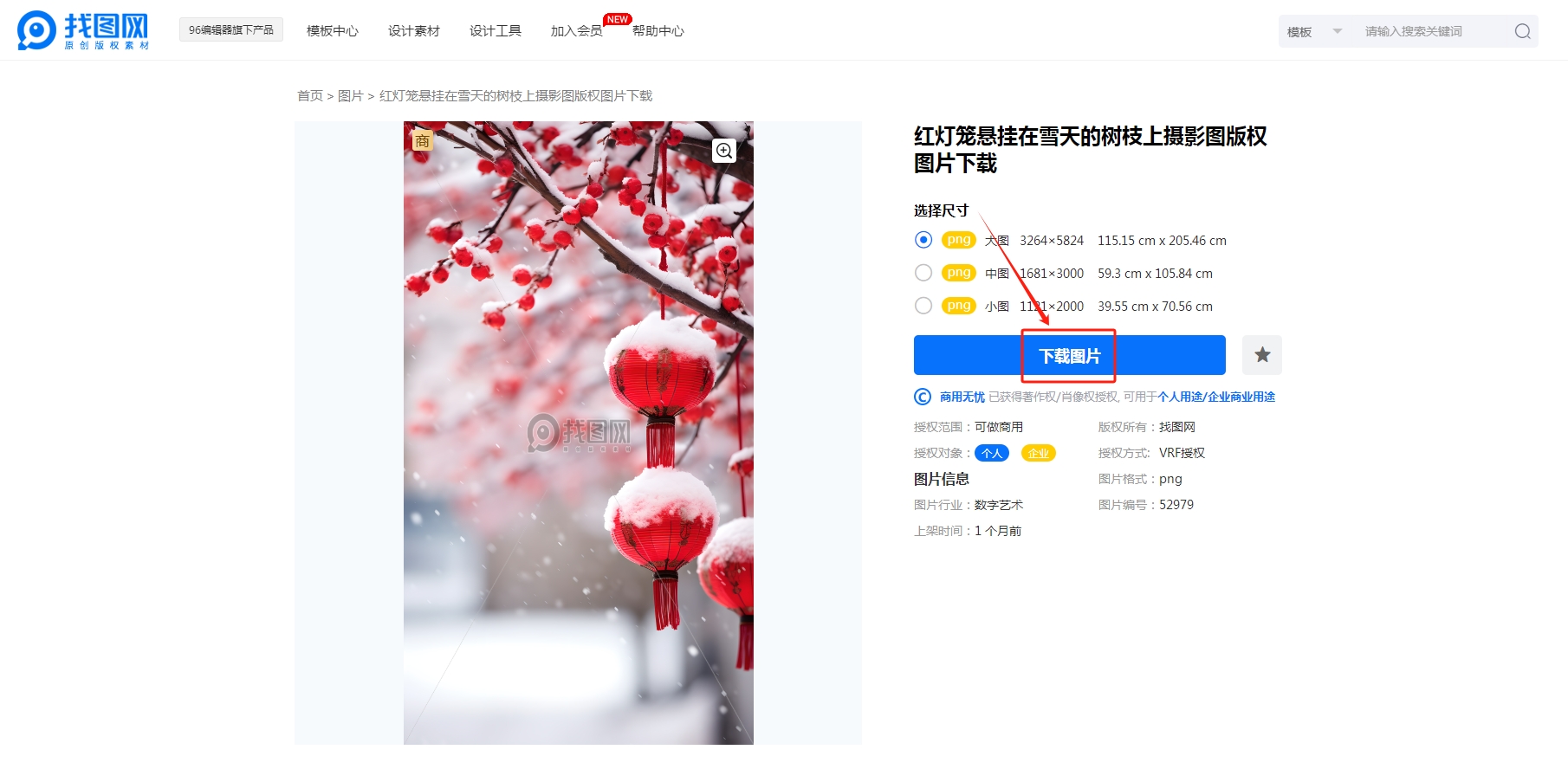 选择尺寸,点击下载图片,即可下载版权图片到电脑使用。