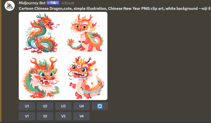 龙年即将来到,在设计龙年的平面设计中离不开各种龙的插画元素,今天来讲解如何使用Midjourney来生成一个合适的龙插画元素: