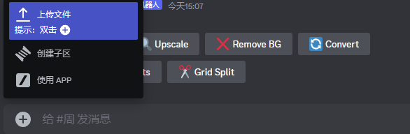 输入栏点击+号,上传文件。将图片上传完毕按回车。注意只能上传jpg和png图片格式!