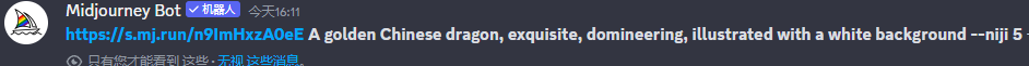 回到输入栏,根据想要的图片效果进行关键词的编写,确定生成关键词后,输入/imagine命令后把刚才复制的链接粘贴在关键词前面,记住链接与关键词之间要打一个空格!否则会出现指令错误的提示。