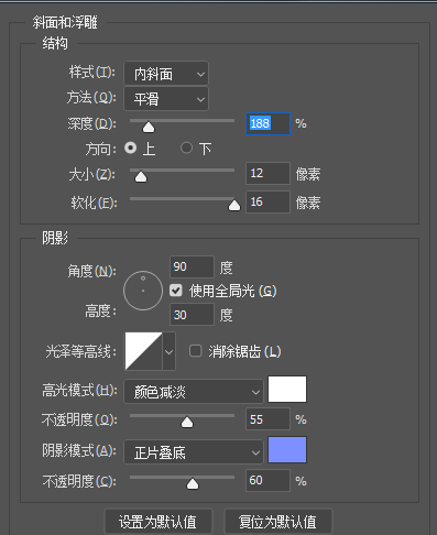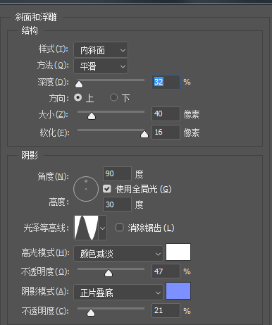 6.再次选中新拷贝的文字图层,双击进入图层样式,添加斜面和浮雕、等高线