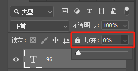 2.文字工具输入文字,填充改为0%